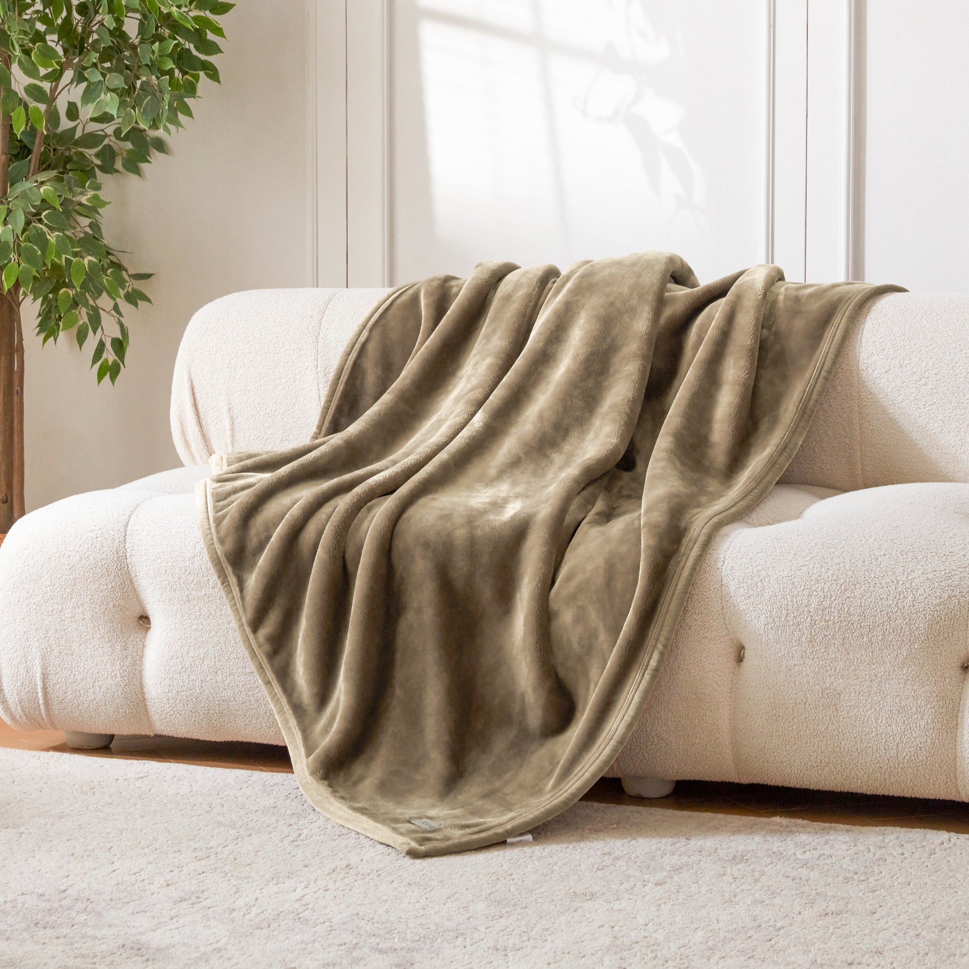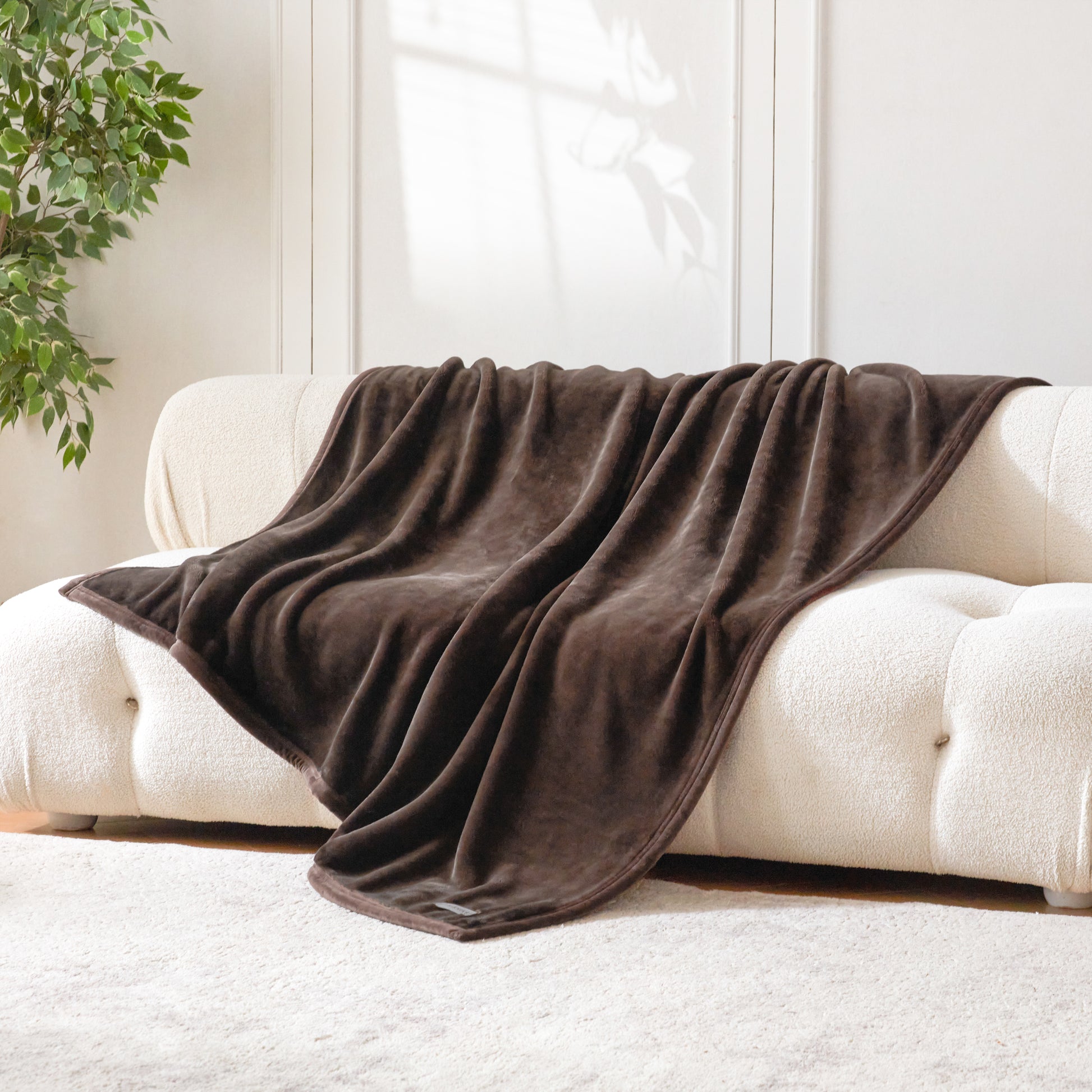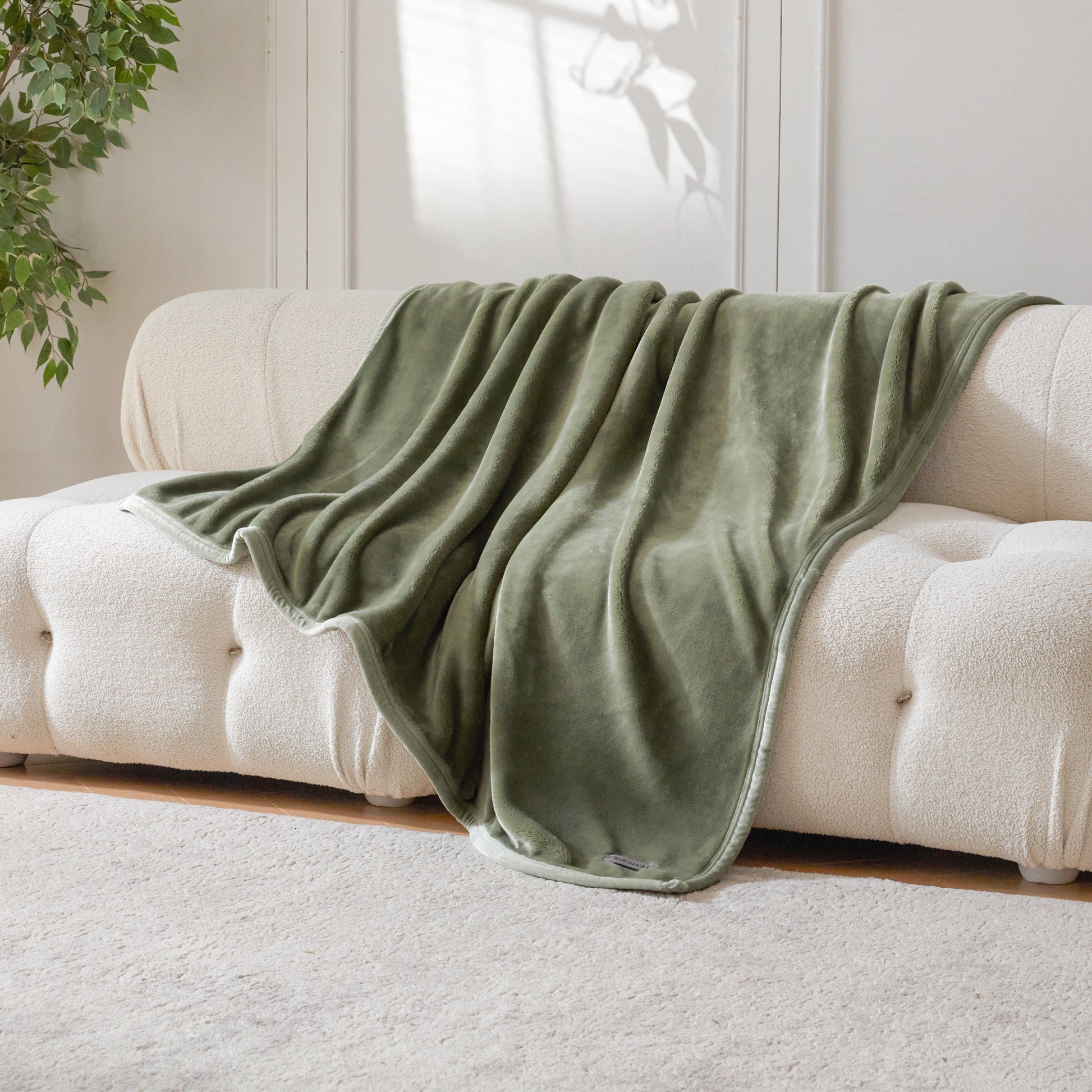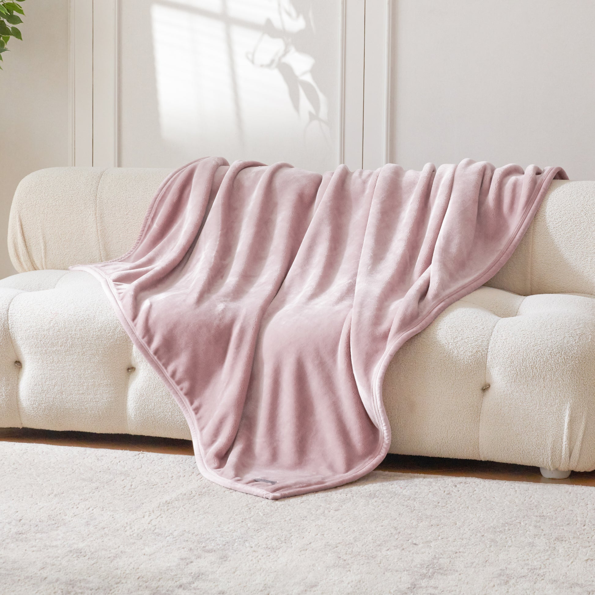 VELVETY SEAM BINDING - The blanket edges are wrapped around with velvety fabric and finished with double needle stitching. This binding treatment enhances durability with a touch of style and added comfort.