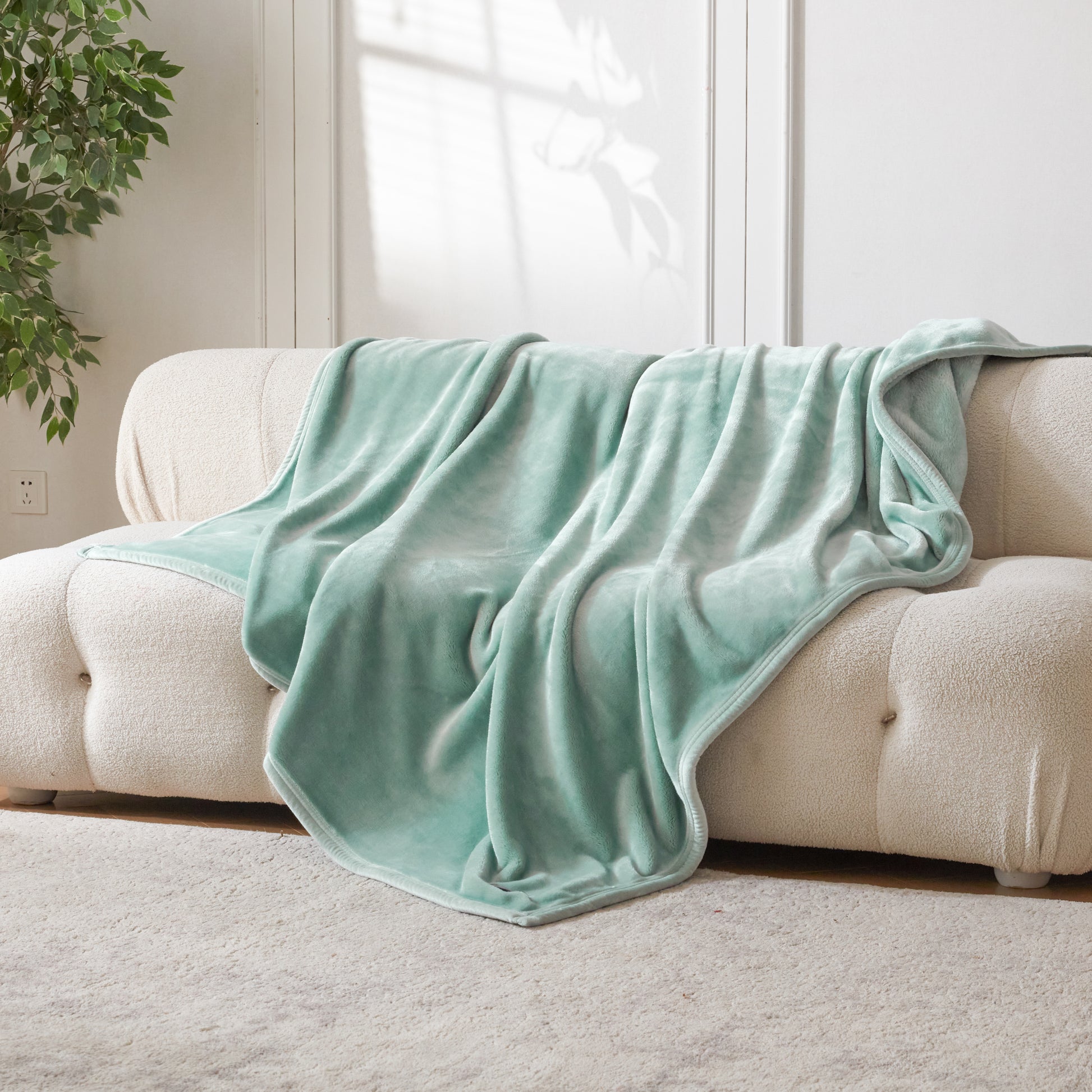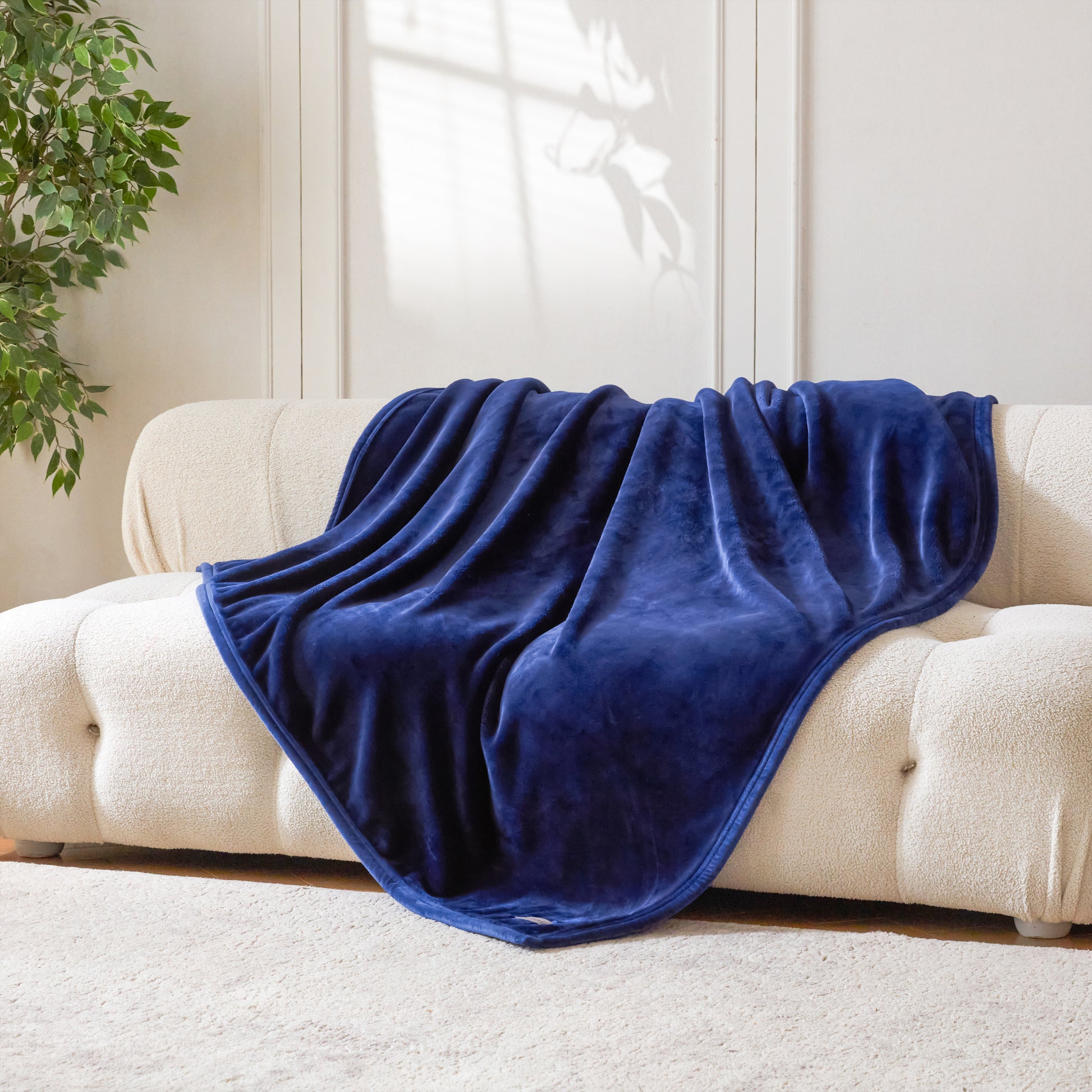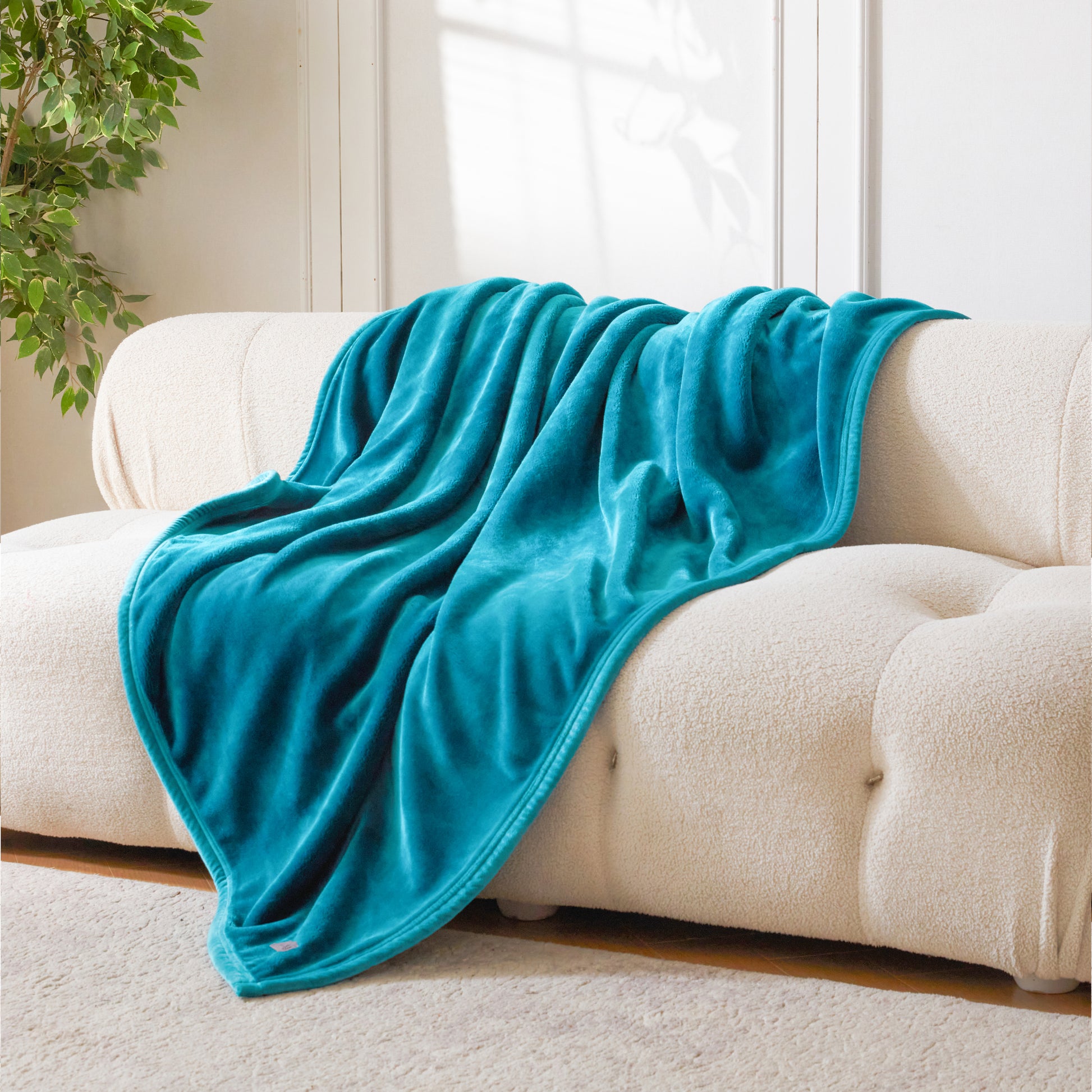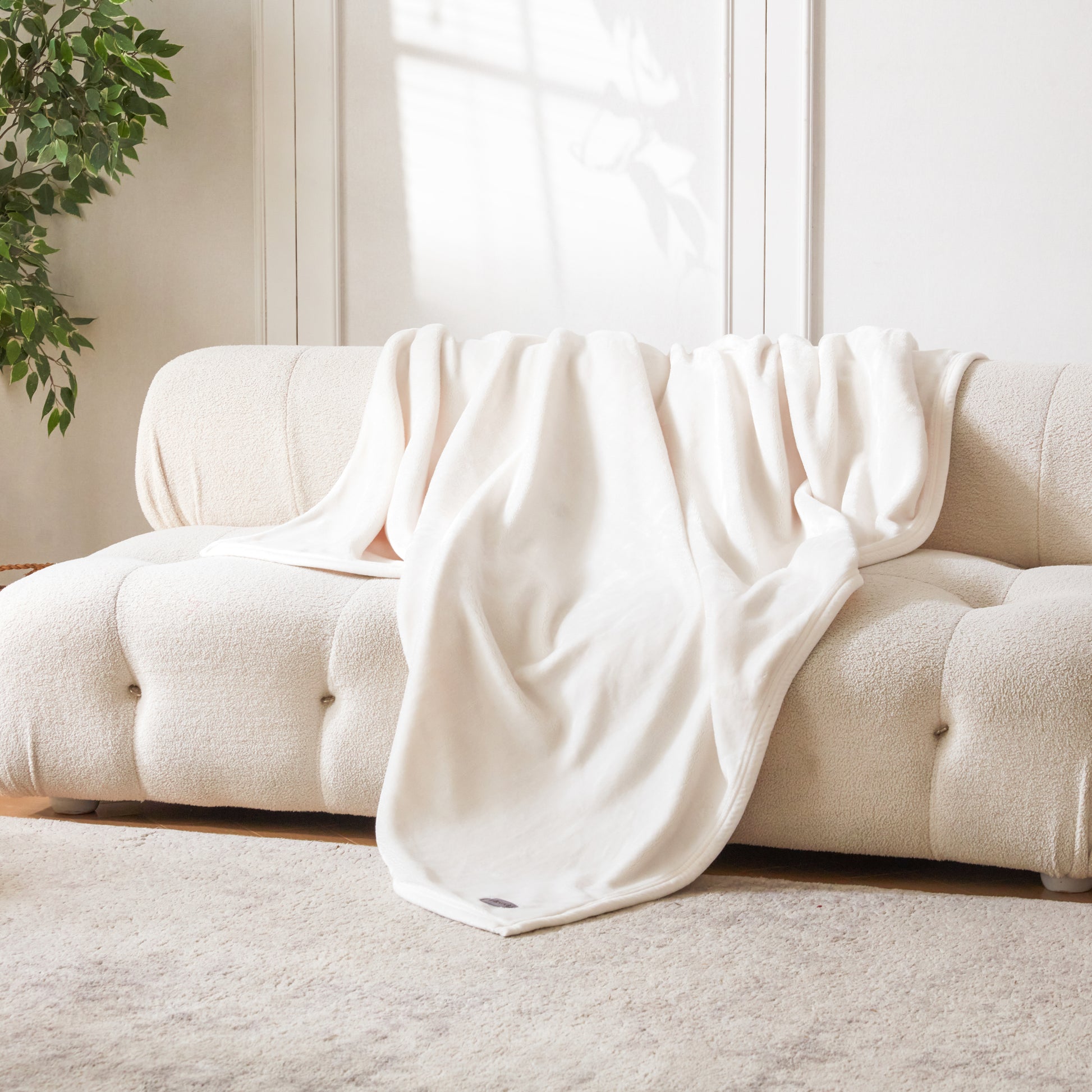 VELVETY SEAM BINDING - The blanket edges are wrapped around with velvety fabric and finished with double needle stitching. This binding treatment enhances durability with a touch of style and added comfort.