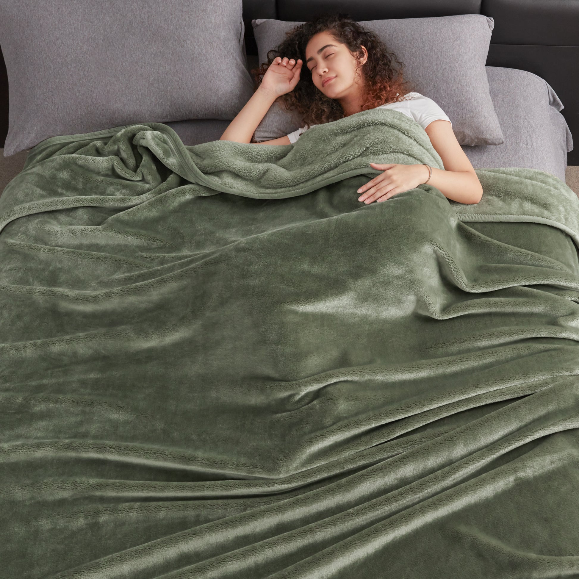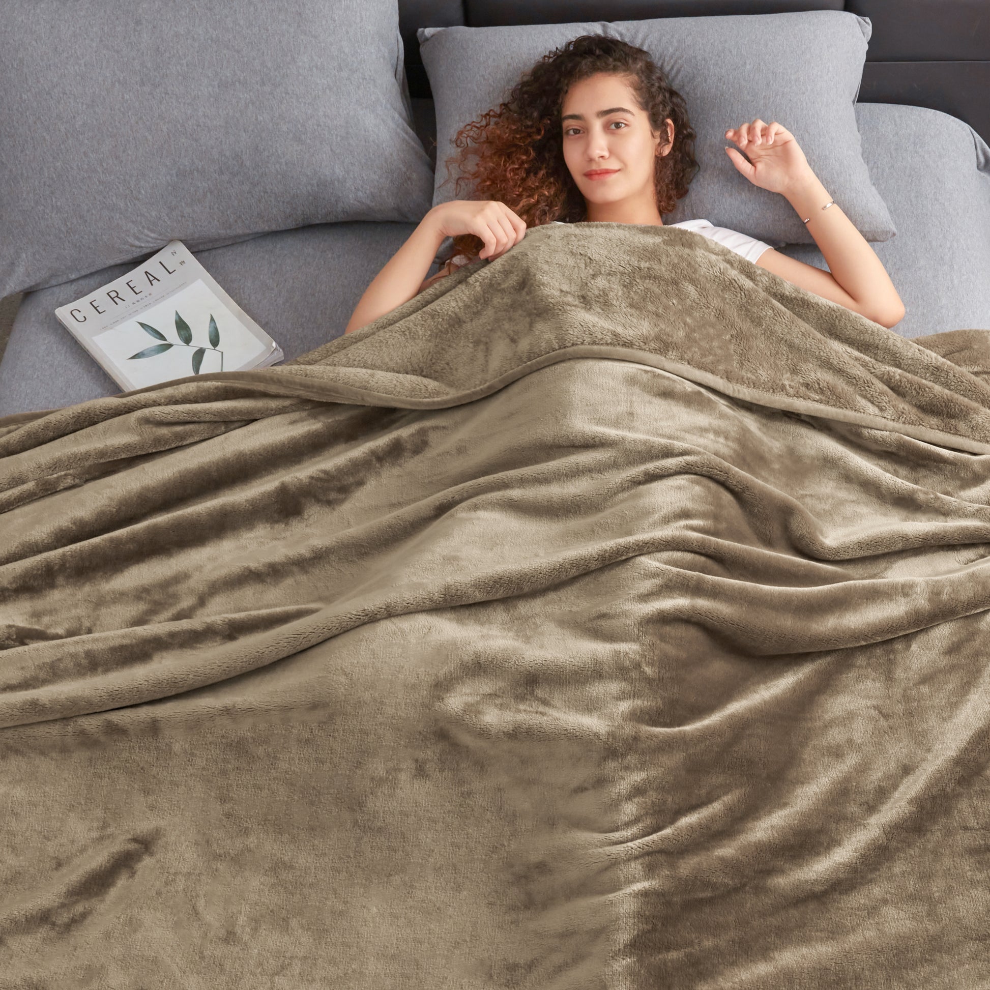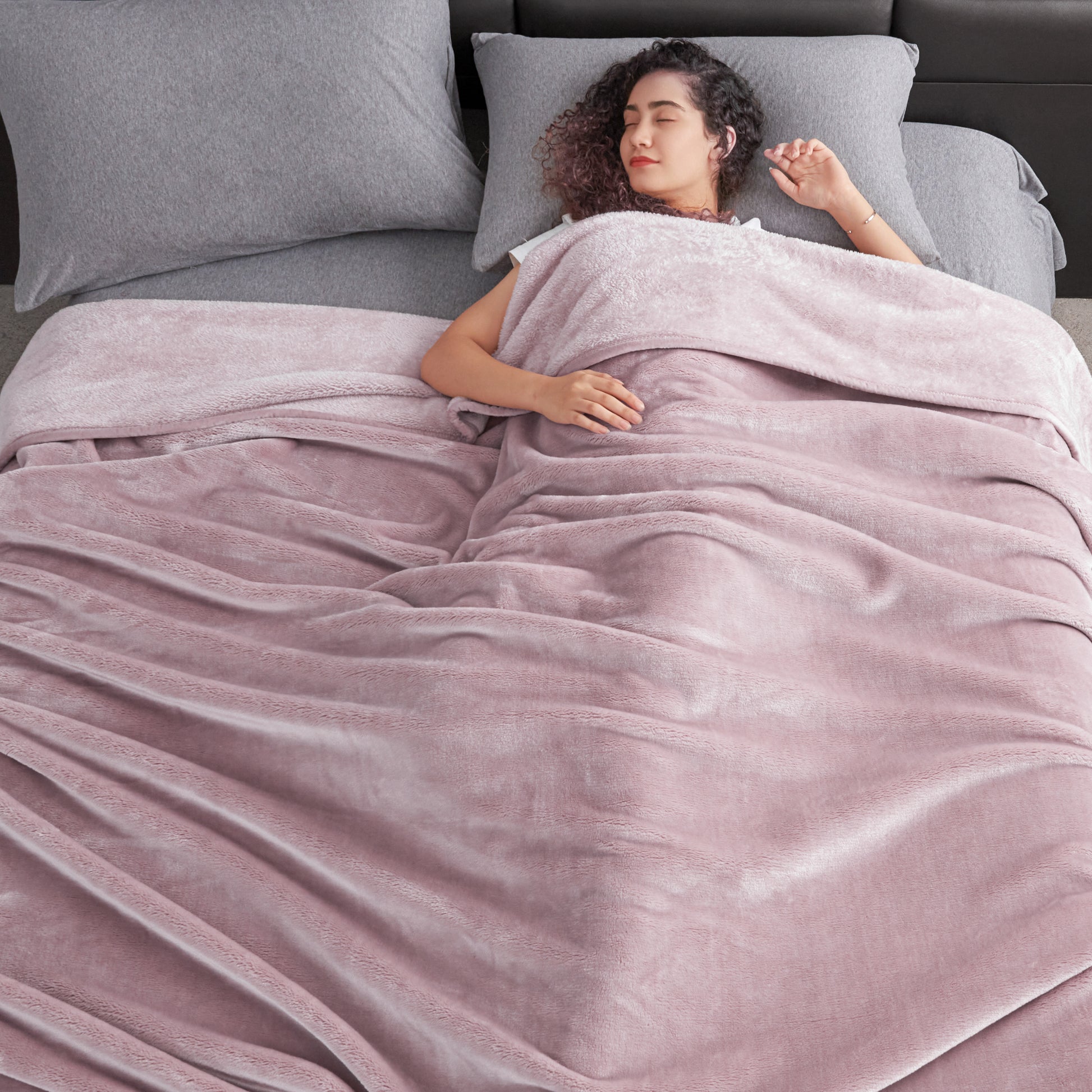 500GSM THICK PLUSH FLANNEL - The blanket body is made from one-piece, high-quality, densely woven flannel fabric. As such, it's more structurally rigid than the ones with two pieces stuck together. The fabric density also helps the piles to stay more upright, making it thicker and cuddlier.