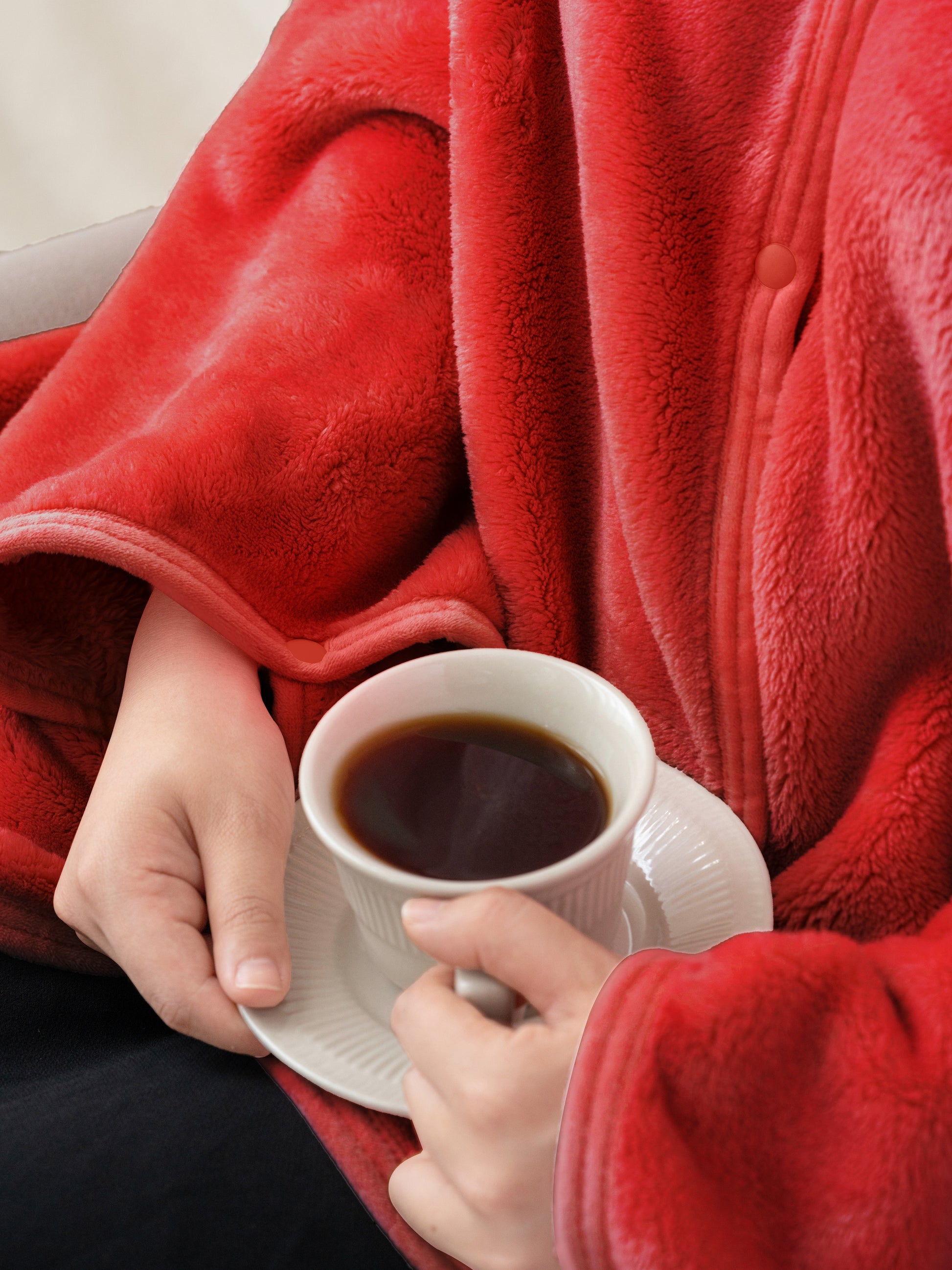 Easy to use: making this blanket into a coat is straightforward - just clipping a few buttons in place then you are done. It'll stay on comfortably just like your everyday coat so that you can go about your day - making/drinking coffee, grabbing the morning paper, tackling the next PowerPoint for that important call, all the while keeping you warm and cozy.
